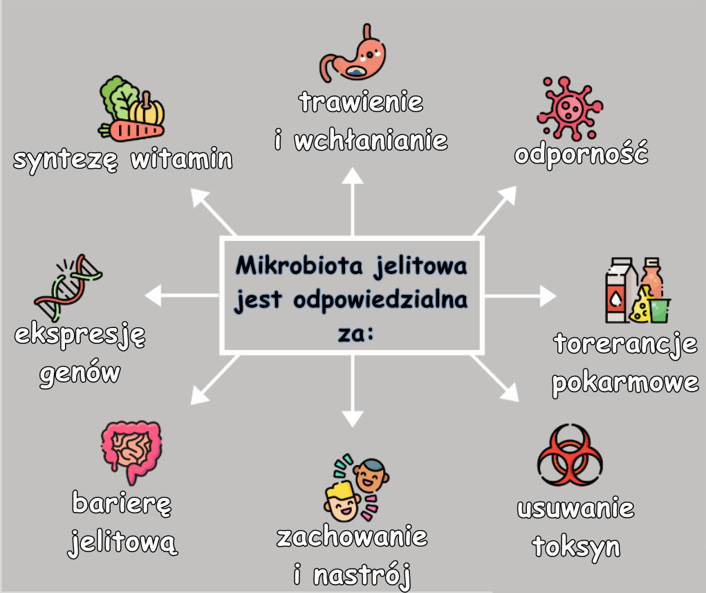 Układ pokarmowy u niemowląt rozwija się jeszcze przez najbliższe 1000 dni po narodzinach. Aby wspomóc układ pokarmowy dziecka, konieczne jest utrzymanie równowagi w jelitach, poprzez zdrowe bakterie pokarmowe, czyli mikrobie jelitową. Niemożliwe jest aby mógł on się prawidłowo rozwijać bez tych bakterii. Aktywna mikrobiota jelitowa w układzie pokarmowym dziecka, chroni przewód pokarmowy przed nadmiernym rozwojem bakterii chorobotwórczych.