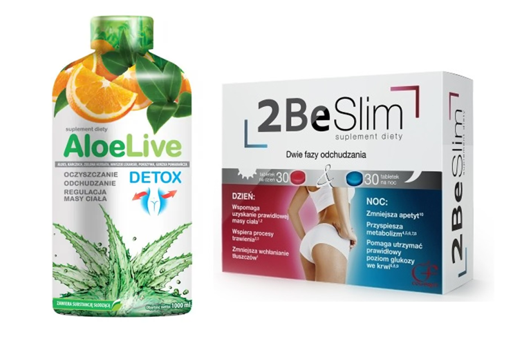 - 2BeSlim – produkty dwufazowy, który posiada unikatową kompozycja składników w dwóch rodzajach tabletek: na dzień i na noc. Suplement diety 2BeSlim pomaga kontrolować wagę. Zawarty w nim wyciąg z guarany i witamina B6 wspomagająca prawidłowy metabolizm energetyczny oraz imbir, który wspomaga komfort trawienia. Faza II zawiera: wyciąg z gorzkiej pomarańczy, karczocha, skrzypu i cynamonu oraz spirulinę; opuncja figowa korzystnie wpływa na odchudzanie; wyciąg z karczocha zwiększa wydalanie wody przez nerki oraz wyciąg z pokrzywy.