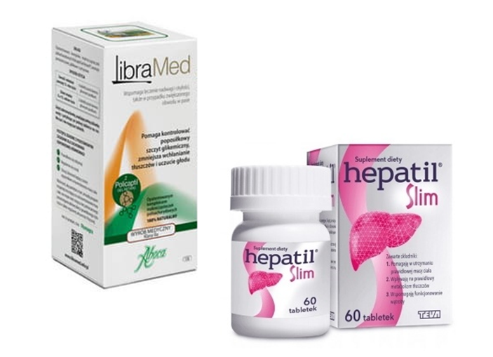 - Hepatil Slim – to suplement diety, którego składniki aktywne pomagają w utrzymaniu prawidłowej masy ciała, a także mają wpływ na prawidłowy metabolizm tłuszczów. Ponadto działają wspomagająco na funkcje wątroby.