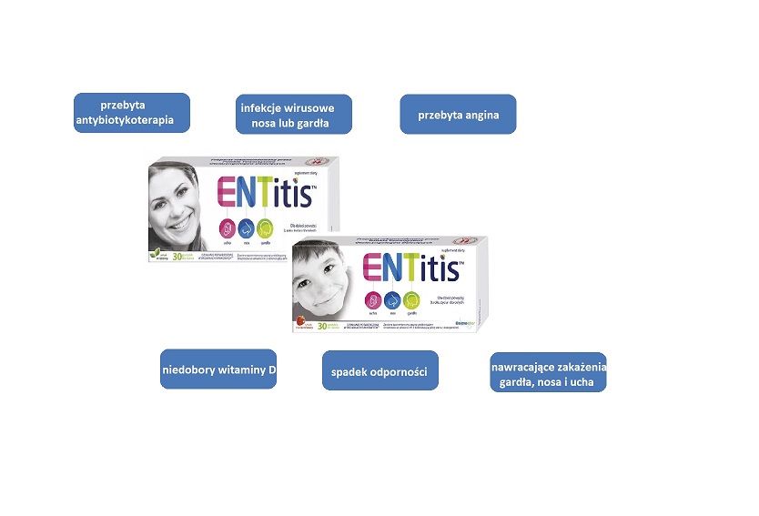 Entitis to produkt na odporność dla dorosłych oraz dzieci powyżej 3 roku życia w formie pastylek do ssania, który zawiera w swoim składzie miedzy innymi probiotyczny szczep Streptococcus salivaris K12, przeciwdziałający nawracającym zakażeniom nosa, gardła i ucha. Naturalny szczep K12 zawiera jedynie 2% populacji, dlatego ważne jest aby go suplementować, gdyż flora probiotyczna ogranicza możliwość kontaktów mikroorganizmów chorobotwórczym z błoną śluzową.