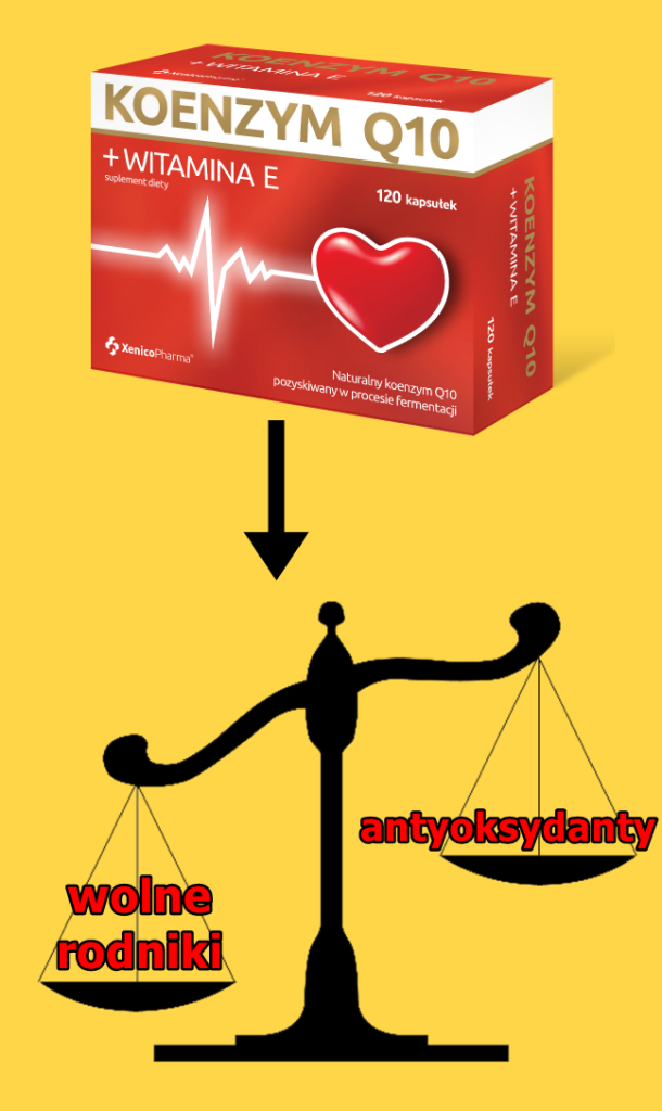 Preparat firmy Xenico – Koenzym Q10 z witaminą E, pomaga w ochronie komórek przed stresem oksydacyjnym.