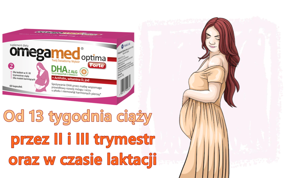 Omegamed Forte powinien być stosowania od 13 tygodnia ciąży, czyli przez cały drugi i trzeci trymestr oraz w okresie laktacji.