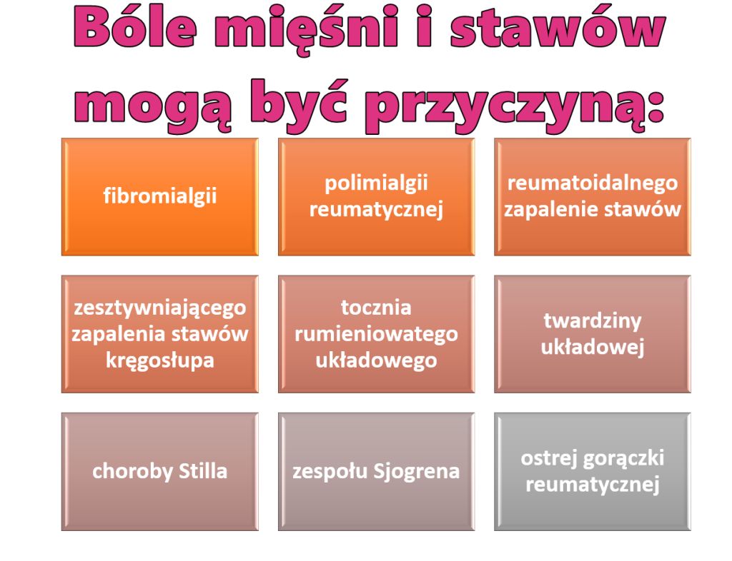 Ból mięśni i stawów może dotknąć osoby w każdym wieku. U osób młodych najczęstszymi przyczynami są przeciążenia, nadmierne rozciąganie i urazy, ale także występują u osób z nadwagą . Jednak bardzo często mogą być spowodowane chorobami układu nerwowego, układu ogólnoustrojowego lub infekcjami. Ponadto za ból odpowiedzialny może być też niedobór witamin i  minerałów.