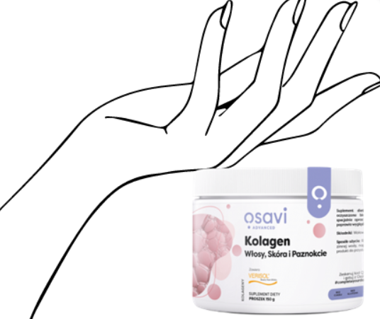 Osavi Kolagen Włosy, Skóra i Paznokcie znacząco poprawia również kondycję włosów i paznokci, zwiększając ich grubość i wytrzymałość.