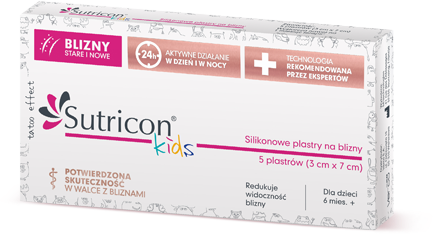 Z pomocą przychodzą silikonowe plastry Sutricon Kids na blizny dla dzieci. To one w krótkim czasie zmniejsza widoczność blizn, a także sprawiają, że stają się one gładsze, a ich powierzchnia znacznie się zmniejsza. Plastry Sutricon Kids wspierają naturalny procesy gojenia blizn u dzieci.