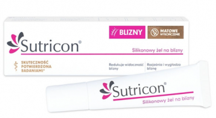 SUTRICON żel do pielęgnacji blizn, szybko wysycha, tworząc na powierzchni skóry elastyczną, niewidoczną powłokę utrzymującą odpowiedni stopień nawilżenia skóry, zarazem chroniąc bliznę przed czynnikami zewnętrznymi. Natomiast plastry SUTRICON redukują dyskomfort w postaci bólu i swędzenia skóry oraz łagodzą uczucie ciągnięcia skóry.