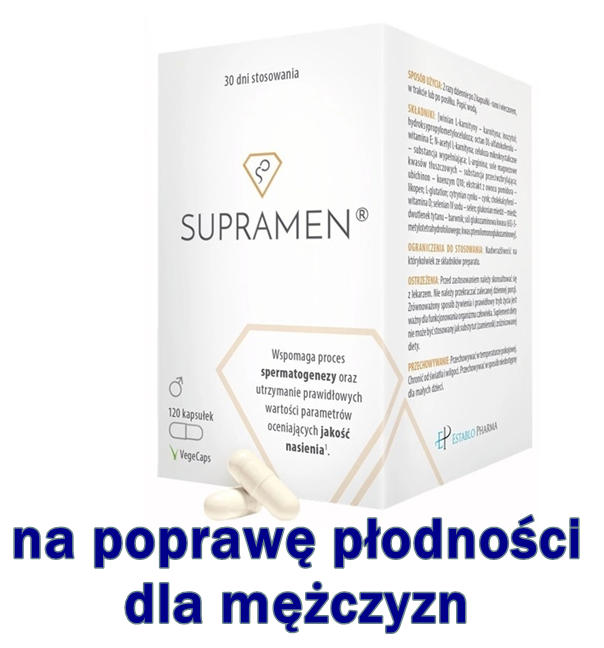 Supramen to suplement diety dla mężczyzn. Działa wspomagająco na proces spermatogenezy oraz utrzymanie prawidłowych wartości parametrów oceniających jakość nasienia, dzięki czemu zwiększa prawdopodobieństwo zapłodnienia. Składniki Supramen wykazują pozytywny wpływ na stan zdrowia reprodukcyjnego mężczyzn oraz poprawiają mikrokrążenia w obrębie miednicy, co przekłada się na ułatwioną erekcję. Ponadto zabezpieczają komórki przed uszkodzeniem oksydacyjnym oraz działają wspomagająco na regulację gospodarki hormonalnej u mężczyzn.