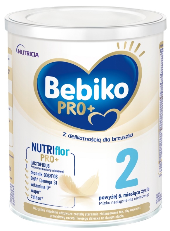 Dla niemowląt powyżej 6. miesiąca życia warto sięgnąć po mleko następne Bebiko Pro+ 2. Zawarta w nim kompletna kompozycja składników odżywczych wspiera prawidłowy rozwój dziecka, ale przede wszystkim pozytywnie oddziałuje na bardzo wrażliwy układ pokarmowy dziecka.