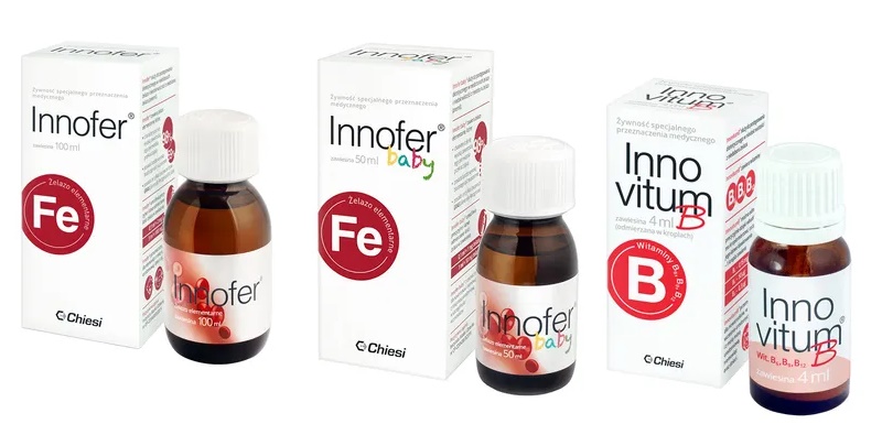 - Innofer Baby, dla noworodków, w szczególności wcześniaków z niską masą ciała, niemowląt oraz dzieci,