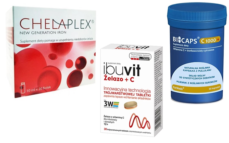 Natomiast Chelaplex, Ibuvit Żelazo+C oraz BICAPS C 1000 przyczyniają się do produkcji czerwonych krwinek i hemoglobiny, prawidłowego funkcjonowania układu odpornościowego, a także zmniejszają uczucia zmęczenia i znużenia.