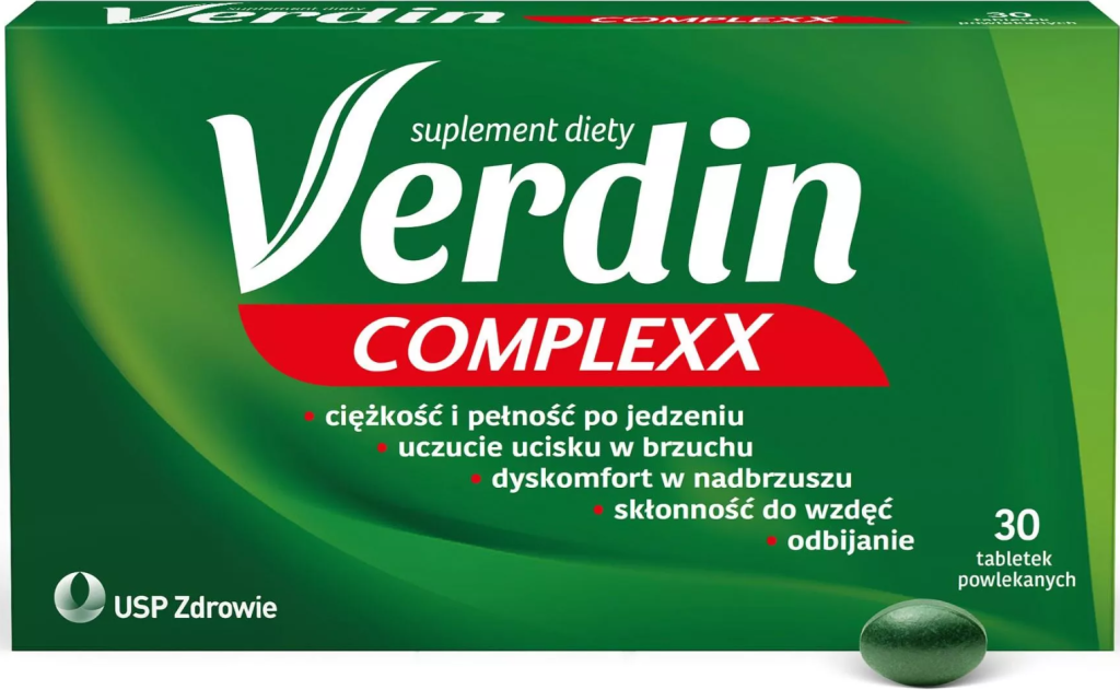 Korzystnie na funkcjonowanie układu pokarmowego i wątroby wpływa Verdin Complexx. To preparat do codziennej suplementacji przeznaczony dla osób dorosłych, które zmagają się z uczuciem pełności i ciężkości po posiłku, bólami brzucha, wzdęciami, uczuciem dyskomfortu w nadbrzuszu i odbijaniem.