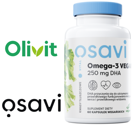 Osavi Omega 3 Vegan to wegański zamiennik tranu, czyli oleju rybiego. Co oznacza, że ich źródłem nie będą ryby, ale specjalne gatunki alg. Takie produkty pochodzenia roślinnego mogą być źródłem kwasu tłuszczowego DHA.