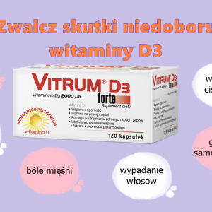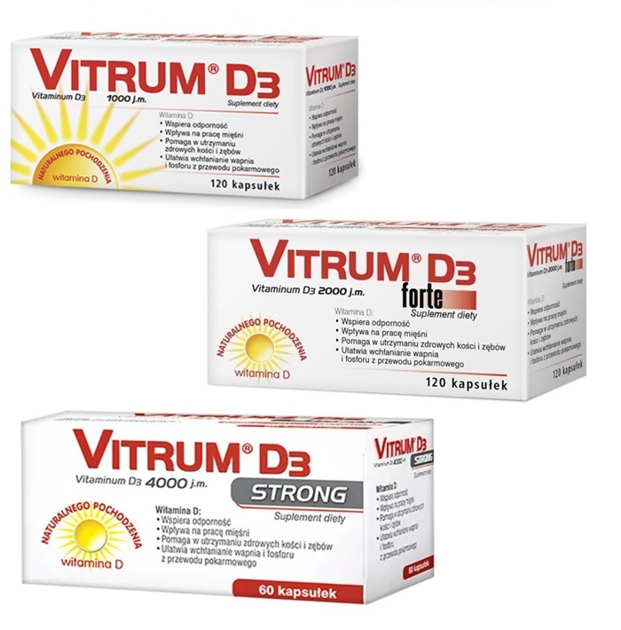 Dla dzieci najlepiej sprawdzi się Vitrum D3 1000, dla osób dorosłych Vitrum D3 Forte 2000, natomiast dla osób starszych lub zmagających się z otyłością warto zastosować Vitrum D3 Strong 4000. Jednak zanim rozpocznie się suplementację witaminą D3, warto wykonać badania krwi, aby sprawdzić czy rzeczywiście występuje jej deficyt lub jak duży on jest.